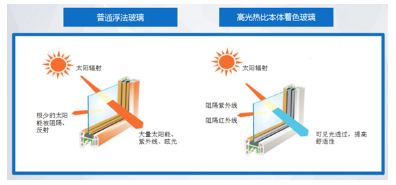 为进一步发挥本产品与现有节能玻璃的节能特性,以高光热比本体着色玻璃为基片进行玻璃加工,可以充分满足不同地域不同节能需求。